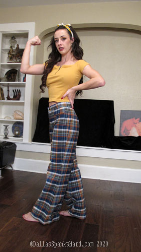 Hailey was raised in the church and she tries to go frequently. She was going to go after her spanking, so I wanted her to be sitting on a very sore bottom. Using the vintage hog-slapper, stiff leather razor strap , handled strap and most importantly ( and tear evoking) was the prison strap. I wanted to let her know full hand the darkness that could enter her life had she driven blackout drunk. The message and pain of this strap are very evident! I use a special tool to keep Hailey from being tempted to bring her hands back. It is not a binding, but one that forces her to obey, because she desire to obey. The wooden paddle with her bell-bottoms up...and then down ensures that the trapped heat inside those pants is then unleashed for her bare bottom. She is given a choice between another wooden paddle, or a surprise implement in a box. She chose the box and the implement was even worse than she could have imagined!